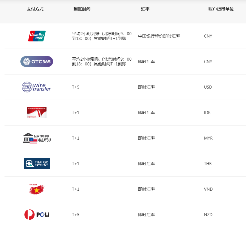 用便捷的出入金方式开始交易。我们一直在努力使您的出入金过程更便利、更高效。
